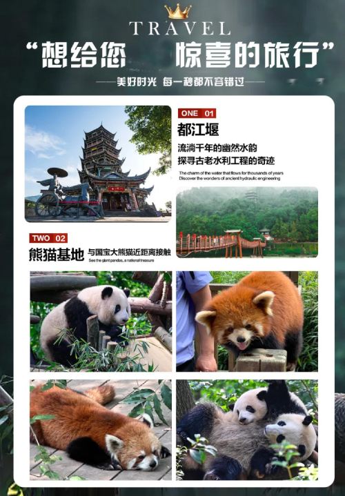 全程景区小交通不含: 都江堰停车场到景区门口观光车10元/人,都江堰景区观光车10元/人,都江堰观景扶梯往返40元/人,青城山观光车往返35元/人,青城山索道60元/人,都江堰+青城山景区耳麦40元/人,熊猫基地观光车30元/人,都江堰+熊猫基地讲解器40元/人,都江堰皮影40元/人。