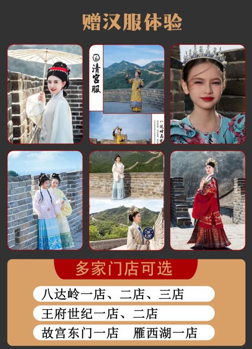 备注:除当日行程不能穿外,其他无时间限制, 使用门店:故宫东华门一店,王府世纪一店二店三店,雁西湖店,八达岭长城一店,二店,三店。