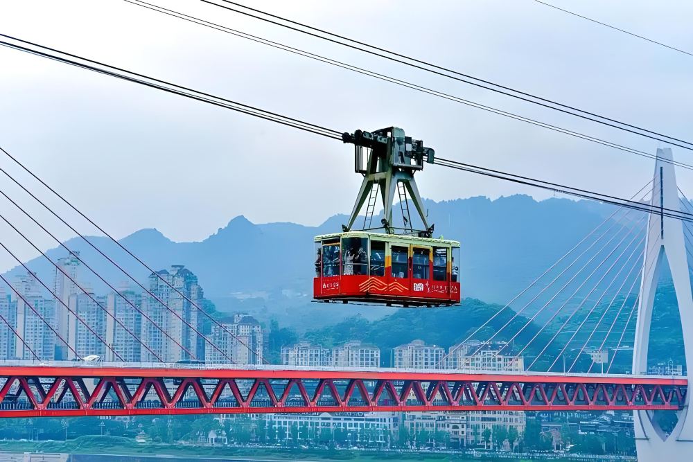 ▲ 长江索道位于中国重庆市,连接渝中区的新华路和南岸区的上新街,是万里长江第一条空中走廊。索道于1986年3月20日动工兴建,1987年10月24日竣工开通运营。长江索道全长1166米,运行速度为6米/秒,单程运行时间约为4分30秒,最大载客量为65人,日运客量达1.05万人次 。