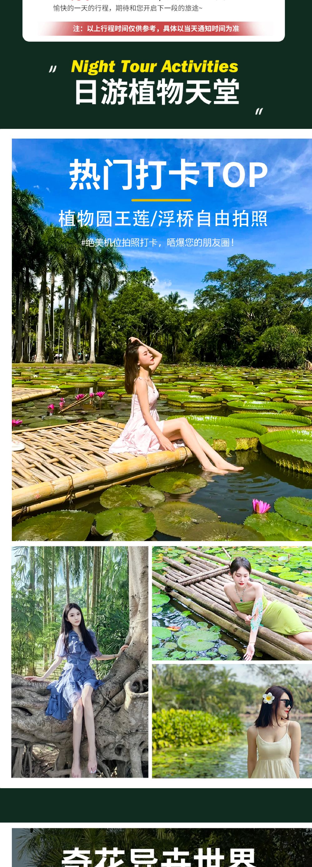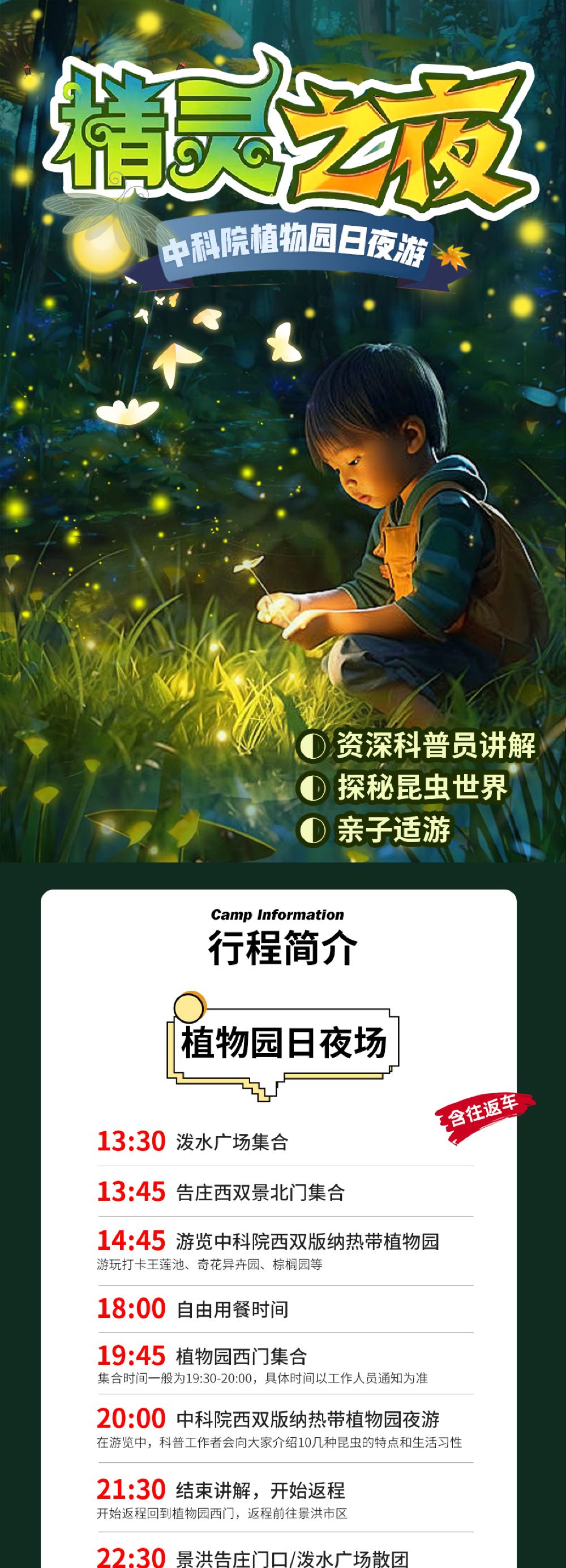 1.此产品为植物园夜游拼团,有多个套餐选择:白天游览植物园+夜游大巴团;单夜游+往返车费大巴团(不含植物园首道大门票)