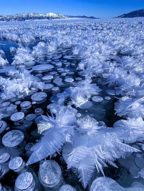 ▲ 冰棱蜷成柔润的花簇,泛着淡蓝的雾光,像把冬夜的寒气揉成了剔透的诗,每一寸纹理都裹着清冷的浪漫。