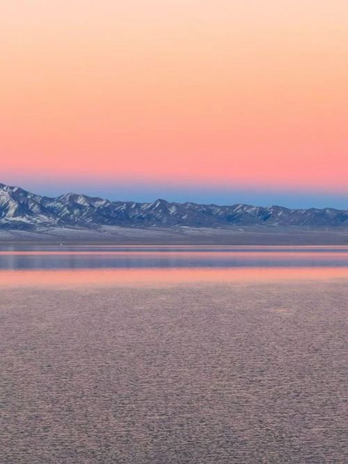 ▲ 橙粉交织的天际浸在湖面,雪山的轮廓裹着暖光,冷冽与温柔在这一帧里恰好相融