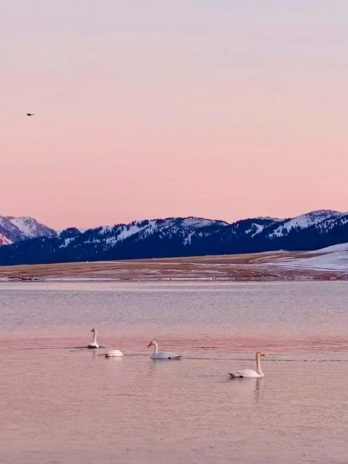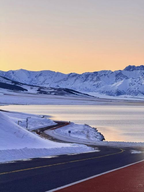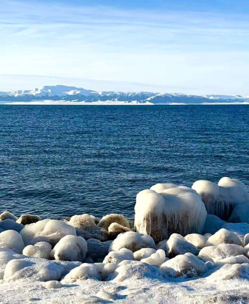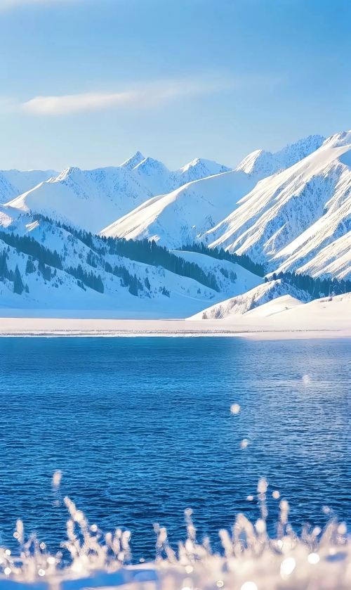 ▲ 雪覆的山脉像裹了层白绒,冷蓝湖水漾着细碎波光,连风里都浸着山野的清冽,把冬日的辽阔都装在了这一帧里。