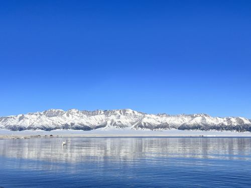 ▲ 澄澈蓝天与雪峰的倒影在湖面铺展开,纯粹的蓝白撞色,像把整个冬天的清冷与辽阔都装在了这一汪静水之中。