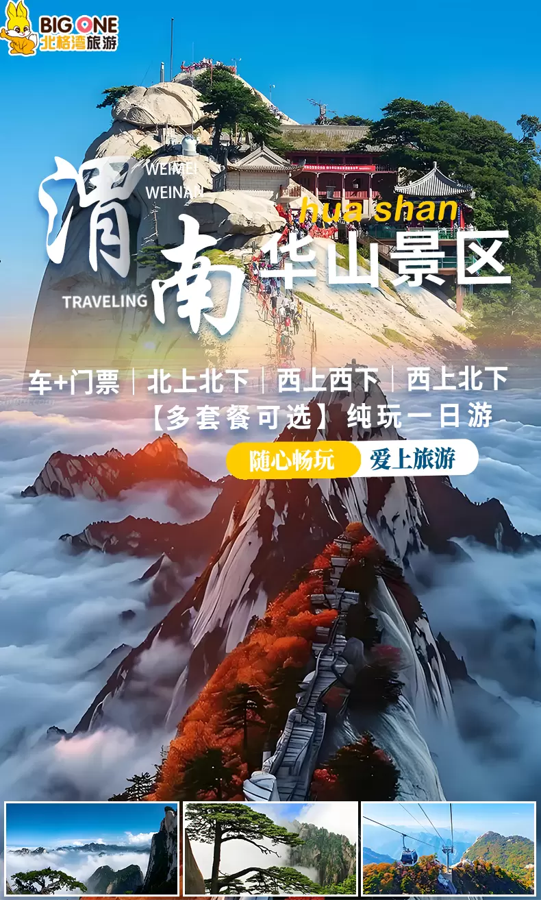 西安华山一日游【西安出发-纯玩无购|优秀导游|北峰往返/西峰往返/西上北下】
