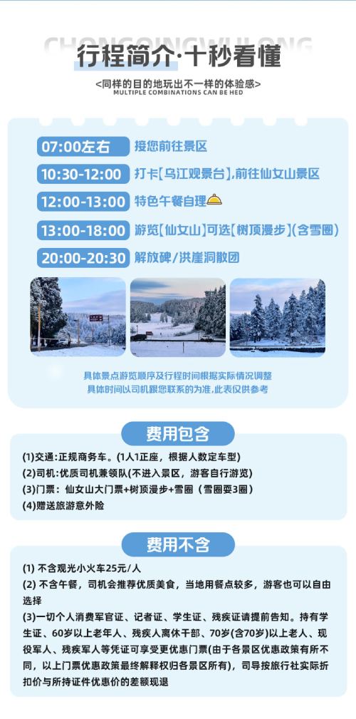 【限定8人团】冰雪季仙女山+乌江画廊+树顶漫步纯玩一日游【公司成立30余年,品质保证,放心游,正规车辆,熟练司兼导】