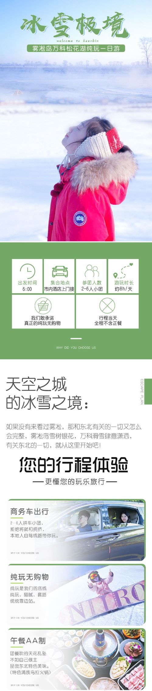 雾凇岛+松花湖滑雪场纯玩一日游+6人小团+早餐+上门接送【[精品小团]2-6人精品小团型,告别传统大巴车团的等待和拥堵!男朋友式服务,土著向导带您玩儿】