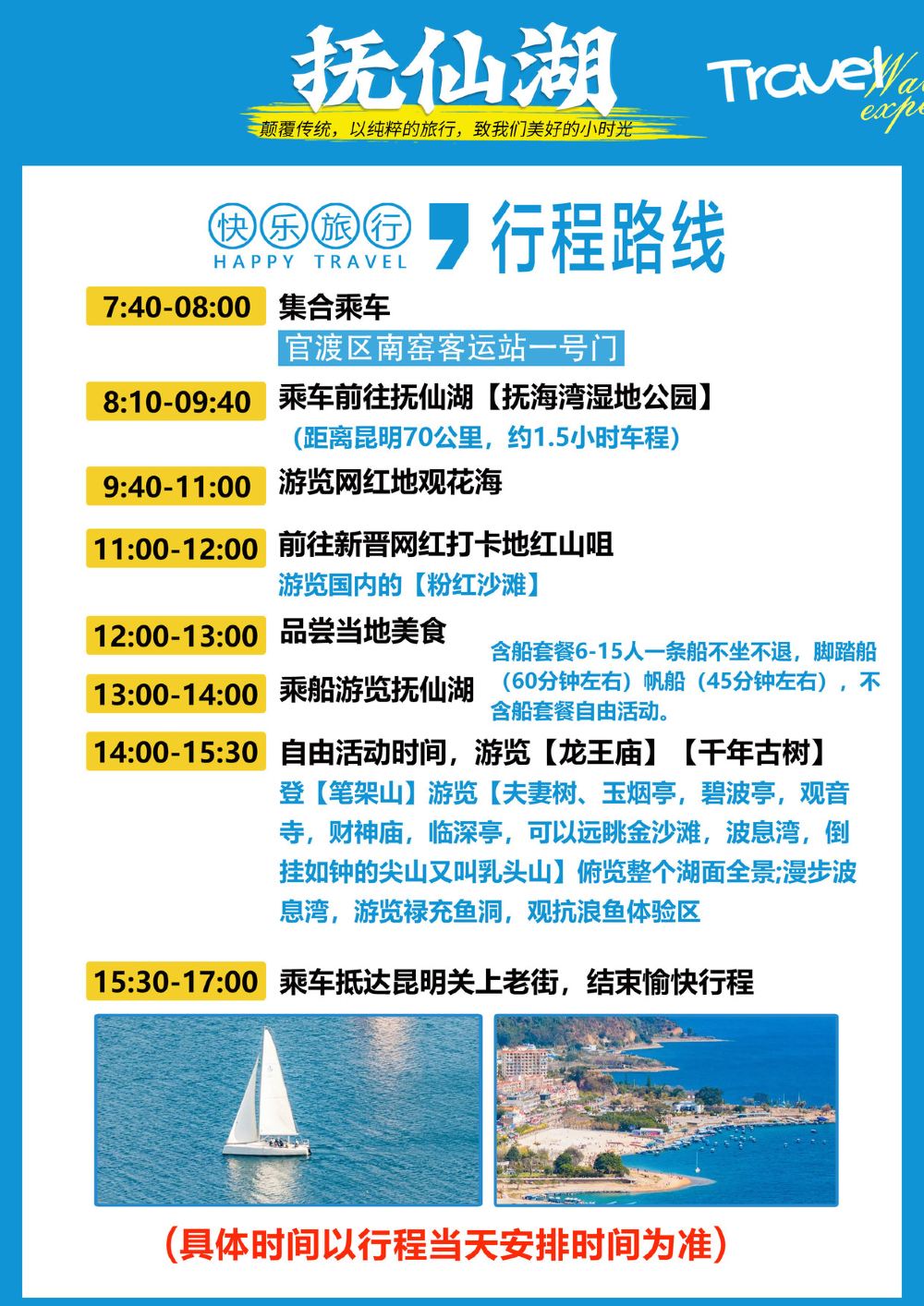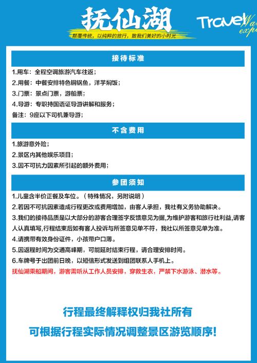 行程游玩时间只做参考,具体也以导游安排为准,望悉知,敬请谅解!!!