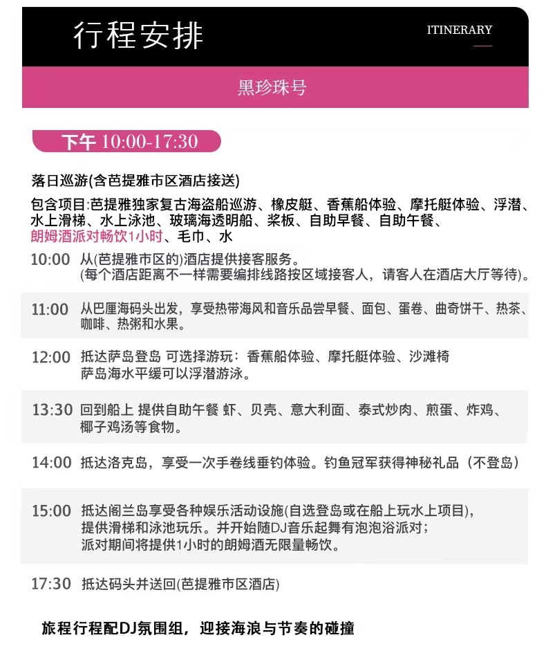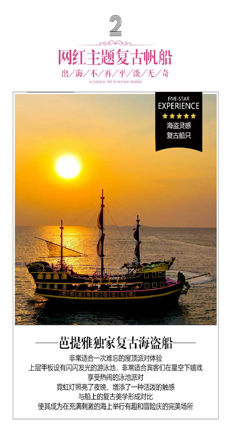芭堤雅格兰岛一日游【懒人落日巡游/复古海盗船/国际DJ驻场/派对狂欢/海上美拍馆/精致下午茶/丰富水上活动】