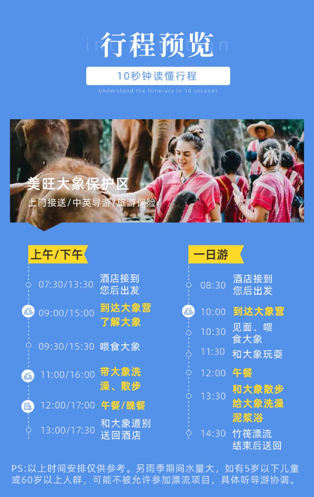 清迈美旺可巧大象生态公园一日游【喂食大象+接送+中文向导】【喂食大象、和大象一起散步,和大象亲密接触】
