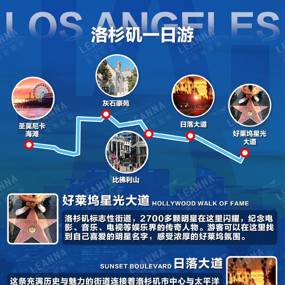 洛杉矶精品游③好莱坞星光大道+比佛利山+圣莫妮卡海滩一日游【【品质之选】礼安那国际——安全与舒适的不二之选】