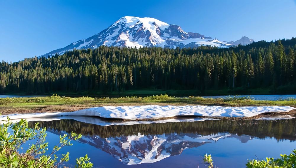 在西雅图晴朗的日子里,可以看到一座白雪皑皑的山仿佛漂浮在天际。这就是华盛顿州著名的雷尼尔火山。雷尼尔火山高14410尺,是美国本土48州中顶高的火山,也是美国排名第五的高峰。山顶终年积雪,冰河向四方放射而出,造就了拥有壮观的瀑布,广浩的湖泊和苍翠欲滴的长青森林的雷尼尔国家公园。每年夏天,山顶上的积雪开始融化,高山上的野花齐开争艳,在风中摇曳,呈现出完全的自然之美。