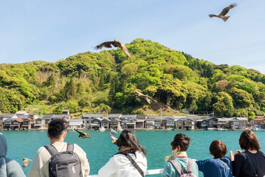 ▲ 伊根湾观光船游览:乘坐观光船漫游平静的伊根湾,从海上的视角欣赏舟屋群落。行程中还可以体验喂食海鸟,与自然环境亲密互动。