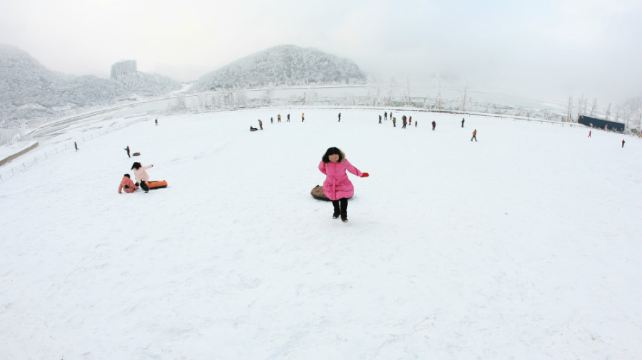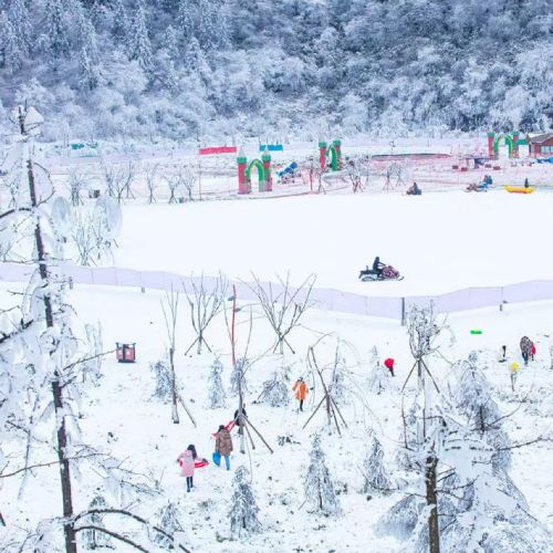▲ 不止有雪景可赏,滑雪、戏雪一样都不可少!约 8 万平米的冰雪乐园,各类 项目一应俱全,雪地摩托、雪地冲锋舟、雪地飞圈、雪地碰碰车、雪地香蕉船、雪地漂移等 众多游乐项目,让你放肆嗨玩。