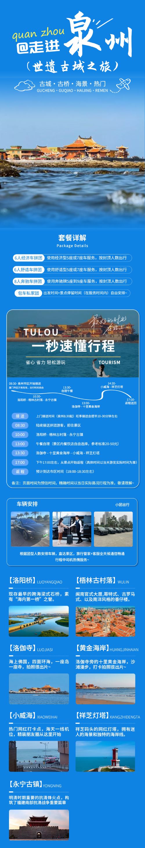 - 晚出发服务更精细,让您更了解泉州,我们精选世遗泉州七大多元化景点:洛阳桥+梧林古村落+永宁古卫城+洛伽寺+十里黄金海岸+小威海+祥芝灯塔(世遗历史人文景点,古村古镇,网红打卡出片景点、超绝海景)车辆直达景点门口,减少步行时间,节省体力充分游玩,非常适合情侣朋友、或带老人小孩游玩,轻松愉快一整天,司机兼导游服务,含讲解指引拍照机位,也可以帮忙拍照哦~