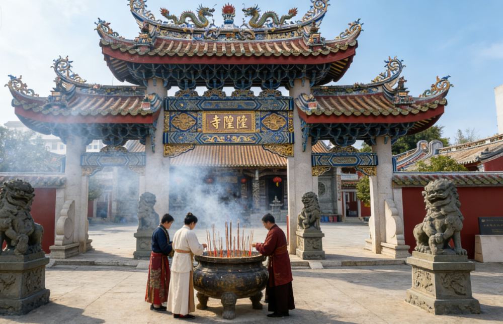▲ 普宁城隍庙 ,建筑结构保留了明代风格和地方特色,在平面布局上,大胆地将池、拱桥等园林建筑融合于庙宇布局之中,具有较高的历史、艺术和建筑科研价值