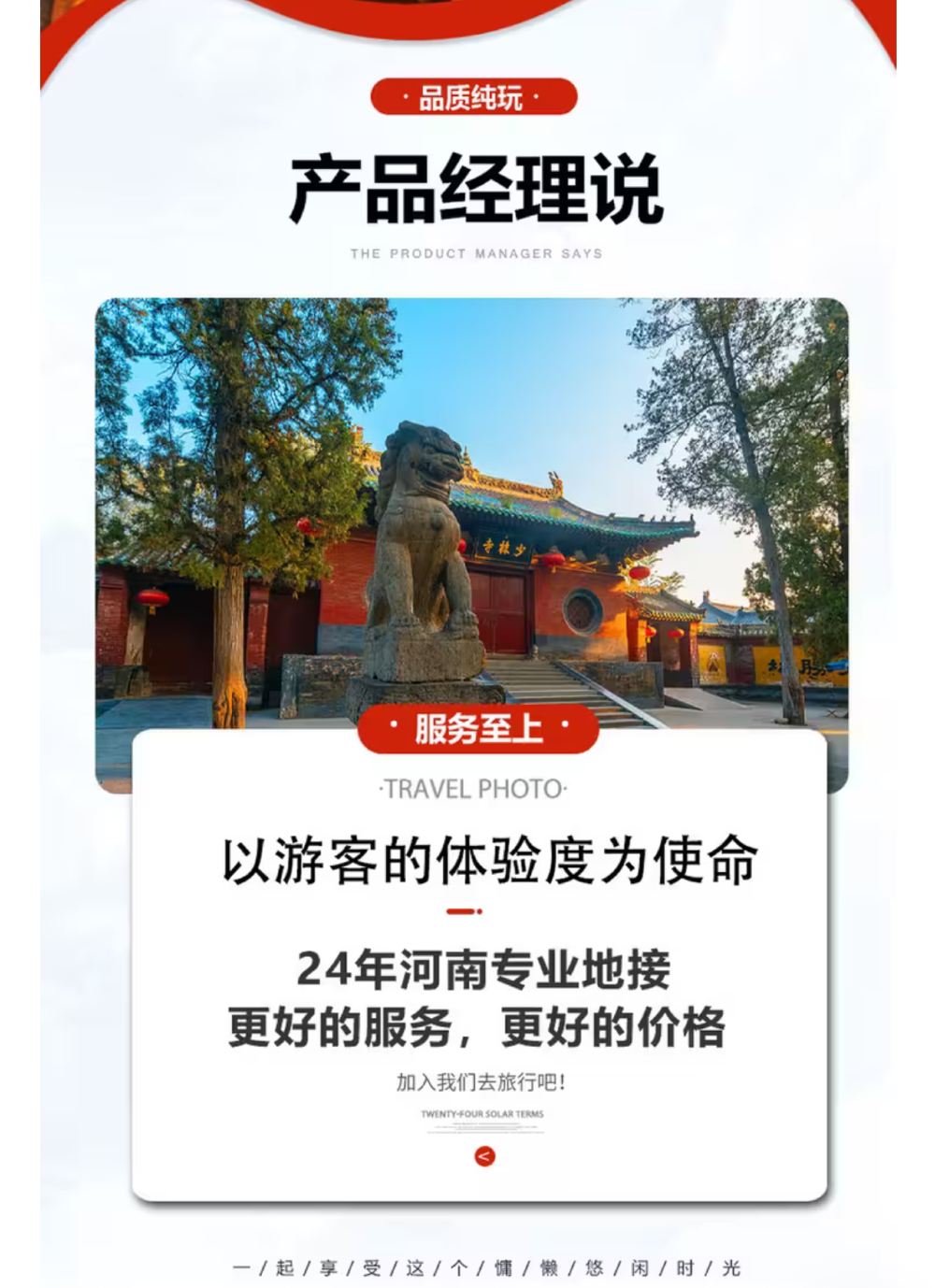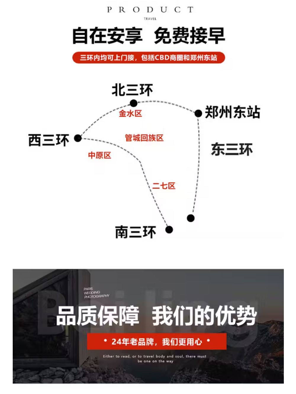 1.节假日如 (春节、五一、十一等)出行人较多高速易堵为错开出行高峰出发时间会提前,为节省时间不再提供上门接服务请自行前往集合地点集合。谢谢您的配合。