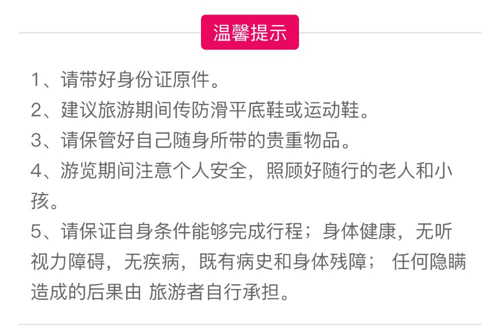 2.节假日独立包团12坐以下车型要停在指定的停车场,停车场到景区门口需要乘坐景区摆渡车30元/人需自理