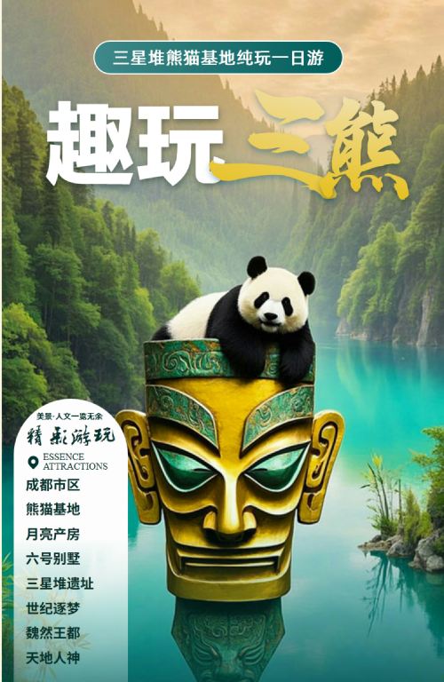 三星堆成都大熊猫繁育基地纯玩一日游【[包含午餐]多套餐可选,AB套餐含午餐,BCDE含人工讲解。】
