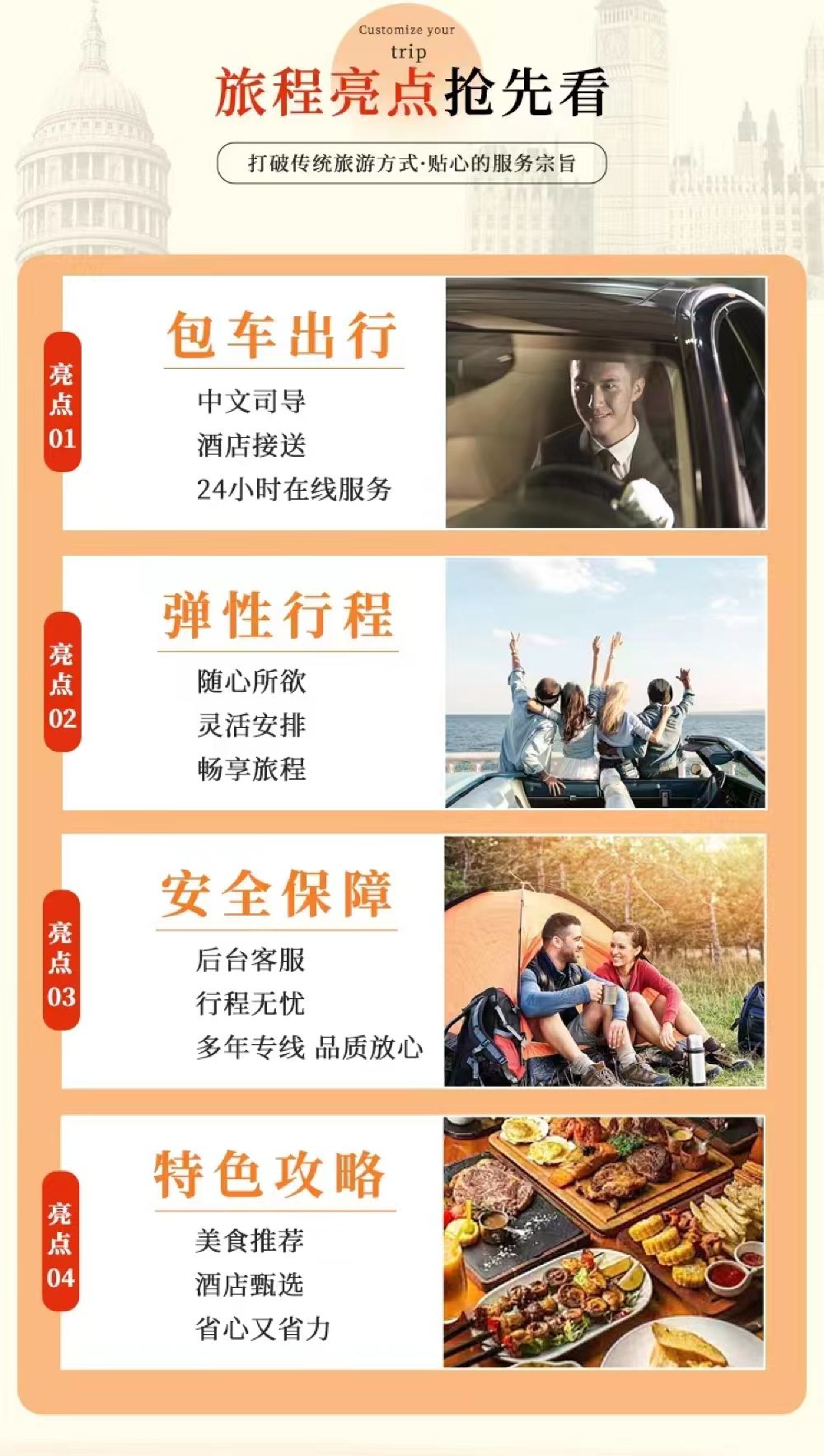 本产品为中文司机专车,使用时长10小时内(包含往返参观及用餐时间),超时需支付5000日元每小时超时费,22:00后夜间服务费额外收取100元/小时。