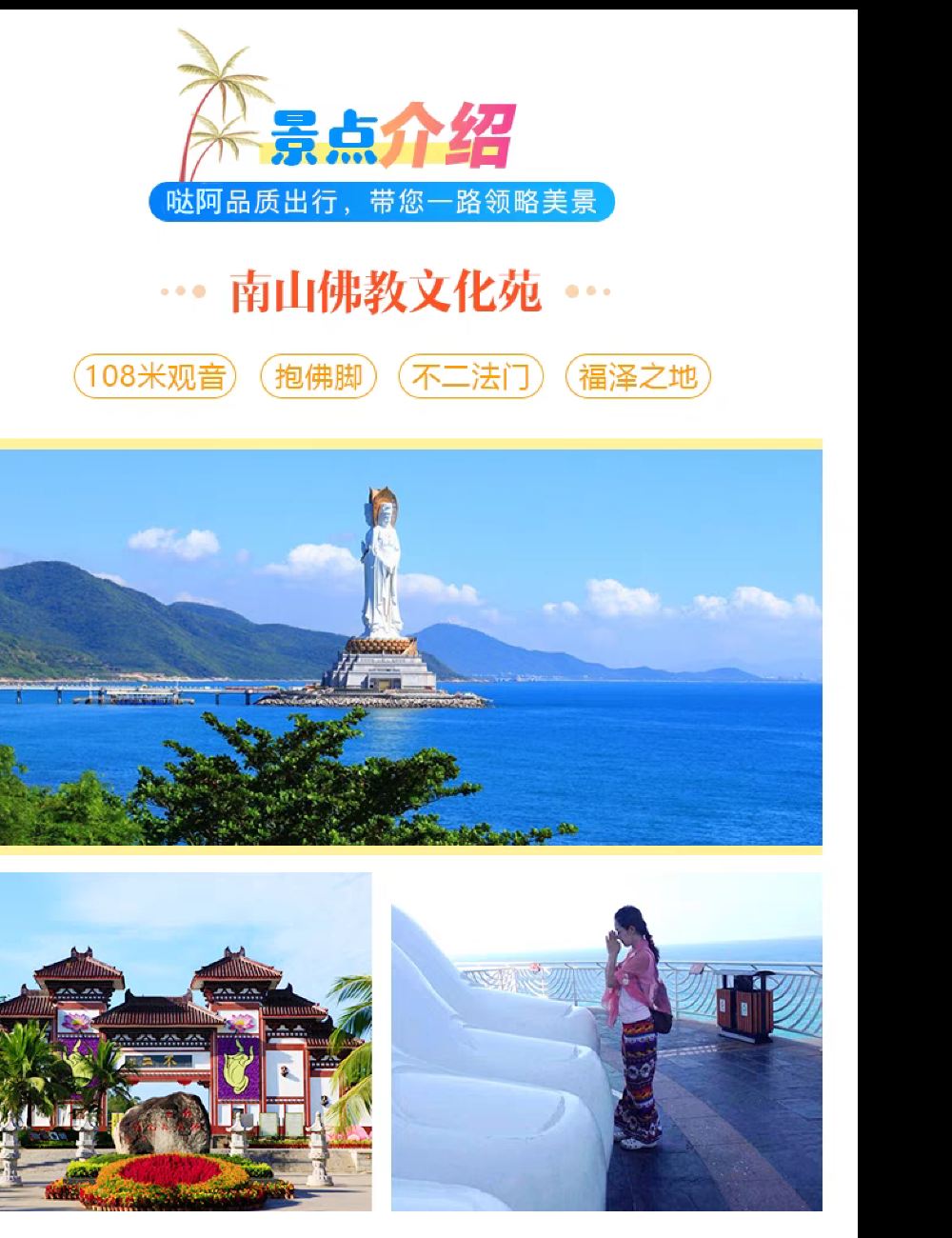 三亚南山文化旅游区一日游【可选+天涯海角或大小洞天套餐】【三亚湾,大东海,亚龙湾免费接送+含门票+导游服务】