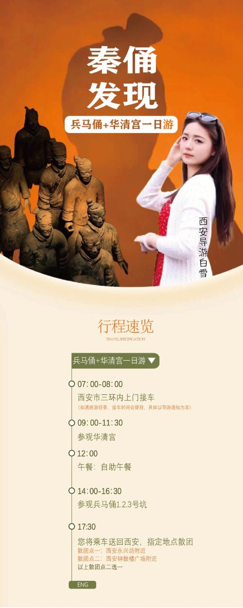 西安秦始皇帝陵博物院(兵马俑)+华清宫一日游【专职导游带队讲解,可选网红白雪团,严格考核服务有保障。】
