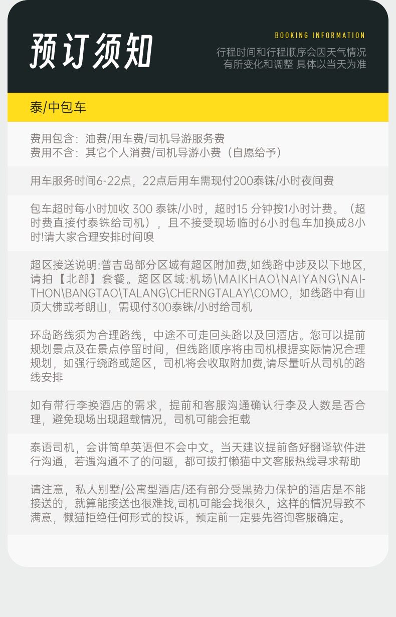 懒猫旅行普吉岛包车环岛一日游普吉镇当地用车专车服务中文司机泰