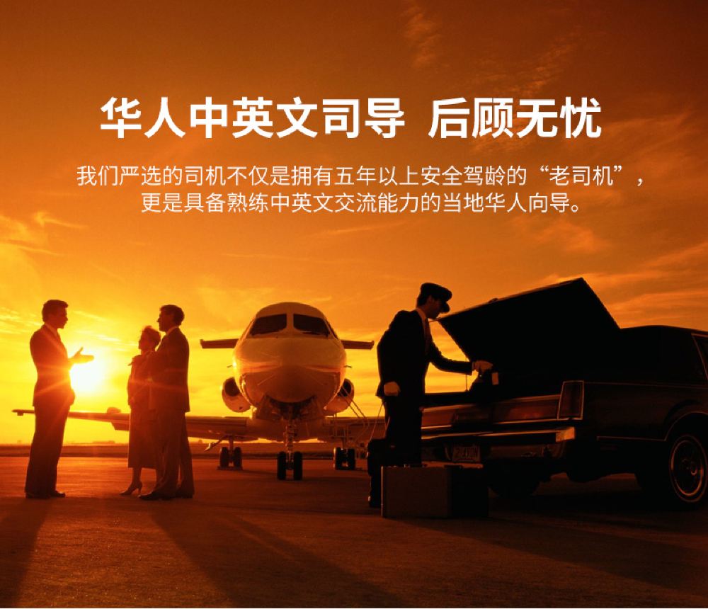 2)司机兼向导:一名华人司机兼向导服务/车(小费,餐补,车上基础介绍/推荐);
