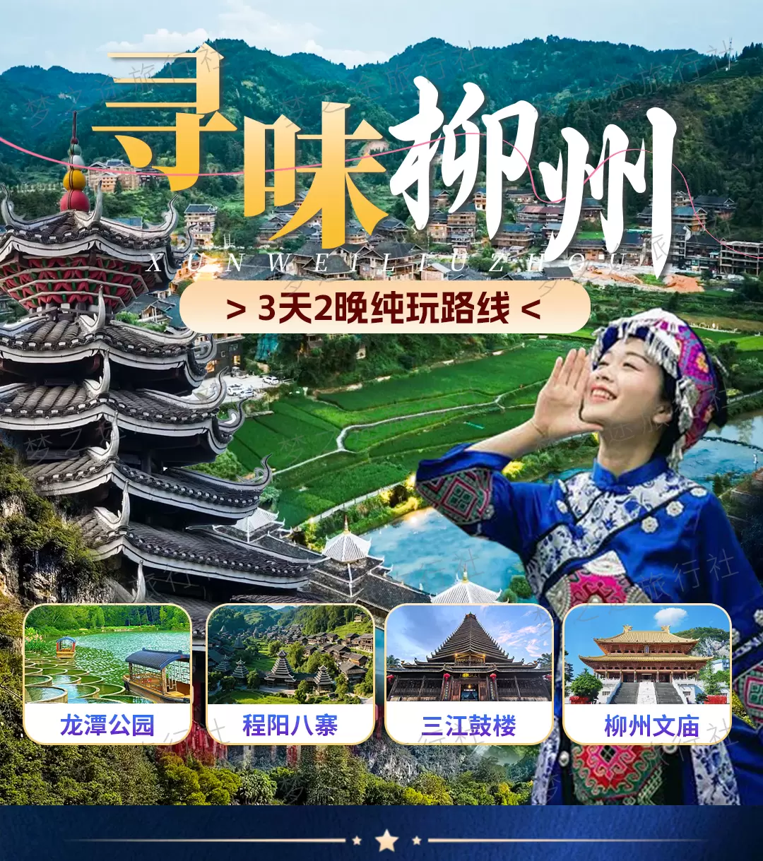 柳州龙潭公园+柳州马鞍山公园+窑埠古镇+程阳八寨+三江鼓楼+柳州工业博物馆+柳州文庙三日游