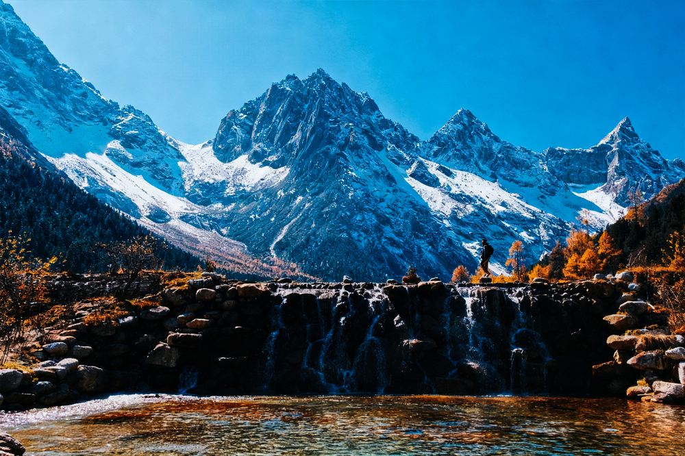 ▲ 瀑布的奔涌打破了山谷的宁静,雪山的静默却沉淀了岁月的厚重。毕棚沟的这幅画面,把动与静的美学,演绎得淋漓尽致