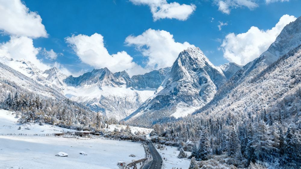 ▲ 大雪覆盖了山林与道路,蓝天、白云、雪山、雾凇,构成了毕棚沟的冬日童话。走在这样的风景里,仿佛每一步都踩进了纯净的梦境