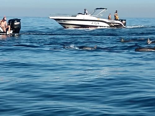 由于毛里求斯海水温暖,常年在23°~28°之间,海豚湾位于西南海岸,是世界上适合野生鲸鱼·海豚观赏点之一。在这里您将有机会欣赏到世界上温顺的抹香鲸(在毛里求斯海域产子·哺育),6~11月会还有大翅鲸过来栖息,和一群常年驻守的可爱、调皮的海豚,并可以下海浮潜,与海豚一起畅游在大海的怀抱之中,经历一生可能只有一次的难忘体验。