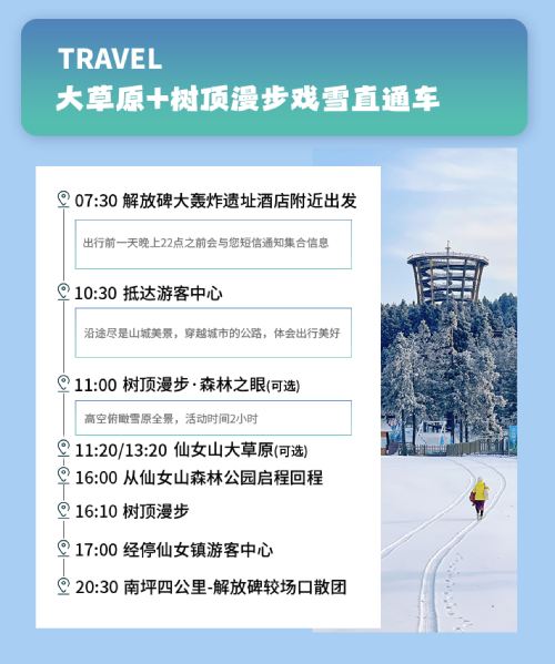 去程:07:30解放碑大轰炸遗址——10:30到达仙女镇游客中心——11:20仙女山小火车停车场