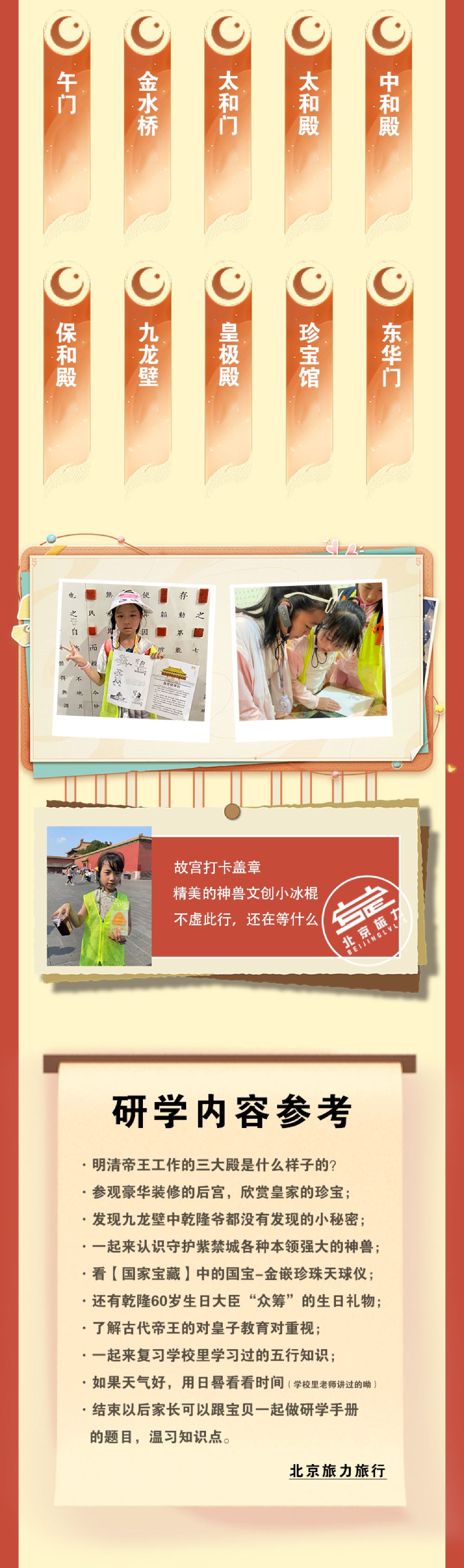 北京故宫【儿童研学 含儿童票【明日可订】7~12岁精致小团】【【讲解内容参考】 初识紫禁城,太和殿-中和殿-保和殿,前朝建筑:珍宝馆-九龙壁-金银器、石鼓馆等】