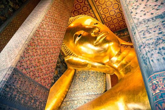 ▲ 继续前往卧佛寺,这是泰国*大的寺庙,拥有 95 座佛塔和一尊 45 米乘 15 米的雄伟卧佛像。