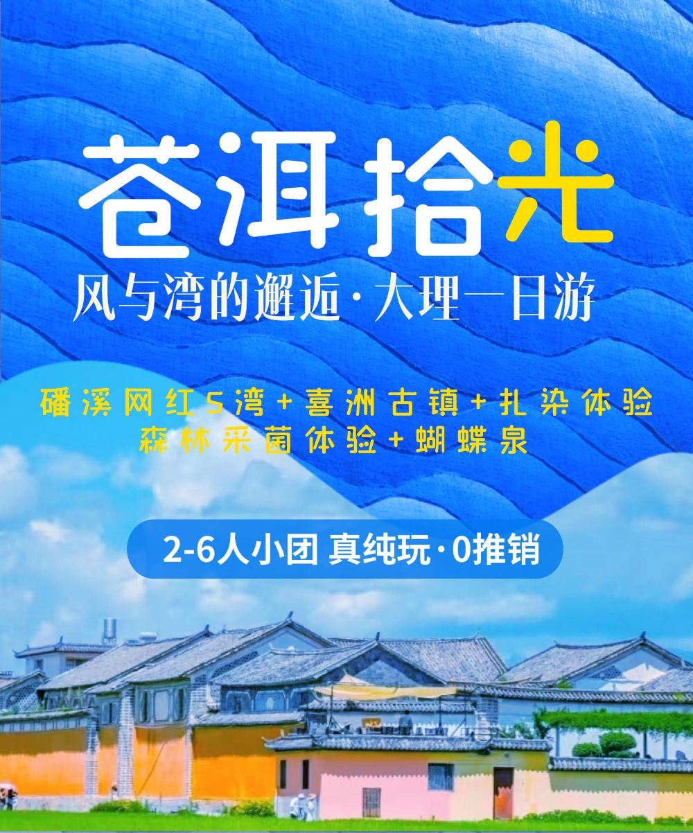 2-6人真纯玩小团大理采菌白族非遗扎染洱海网红S湾喜洲古镇【〖甄选体验〗苍山森林采菌+白族非遗扎染手工制作+洱海一线海景廊道漫步+蝴蝶泉走进自然+喜洲文艺美拍】