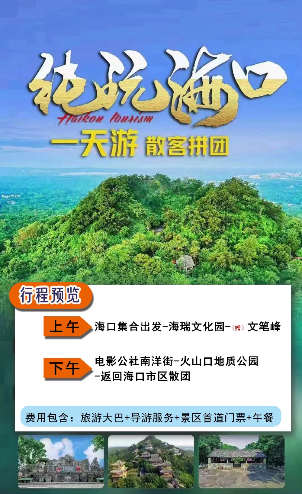 火山口公园+观澜湖电影公社【南洋潮】+文笔峰+海瑞公园一日游【海口精品一日游/游览海口经典景区【海瑞文化园+火山口+电影公社】】