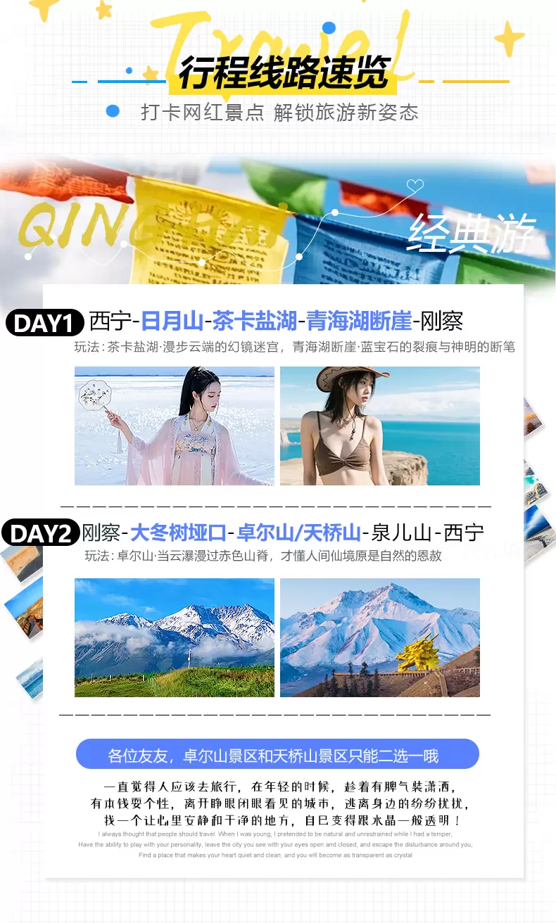 茶卡盐湖+青海湖圣泉湾(断崖)+卓尔山+日月山+大冬树山垭口二日游【3人团丨上门接送丨纯玩无购丨直达景区】