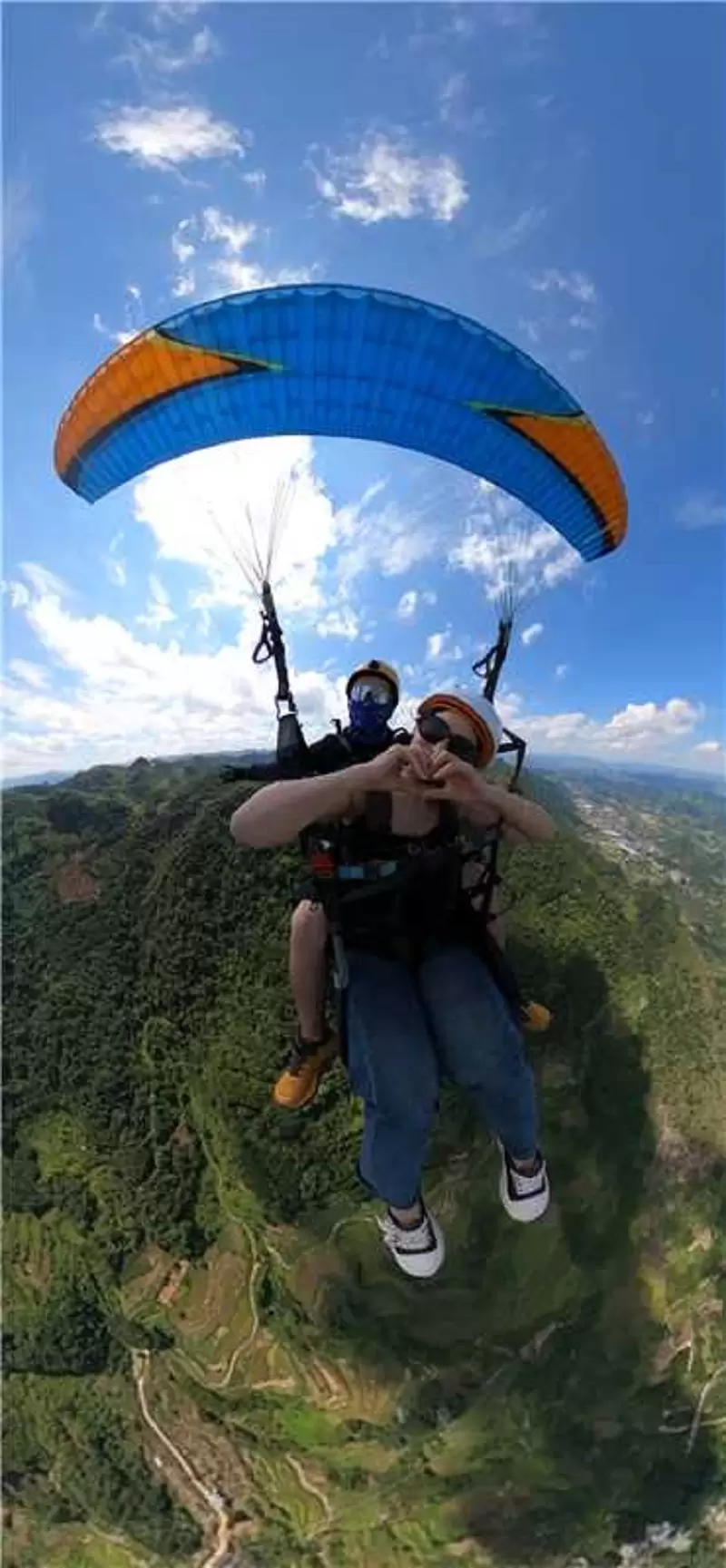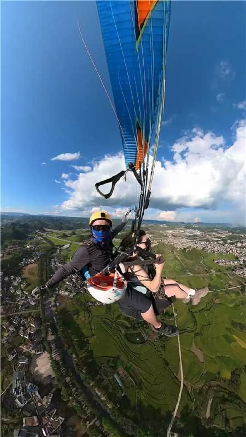 贵州省黔西南兴义市万峰林滑翔伞基地【专业教练一带一飞行体验/多种摄像套餐可选】