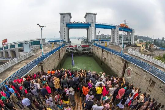 ▲ 船过葛洲坝船闸,体验水涨船高或水落船低