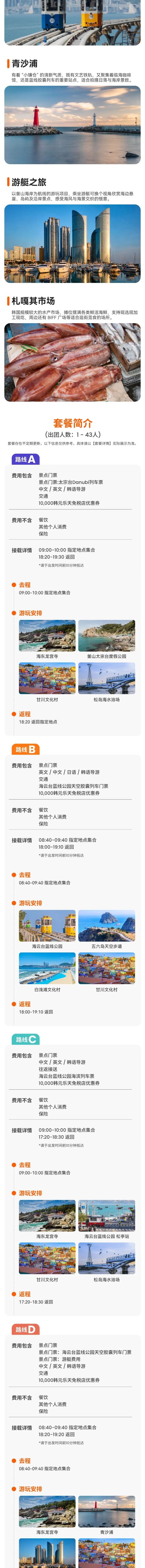 蓝线公园+甘川文化村+五六岛天空步道+白浅滩一日游【线路E】【乘坐海滩列车(可选择蓝线公园海滩列车和天空胶囊)沿着东海与南海交汇的釜山海岸行驶】
