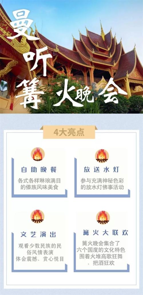 曼听公园篝火晚会普通票:【需要排队入场】含自助餐,民族特色表演座位(对号入座),水灯祈福,篝火狂欢