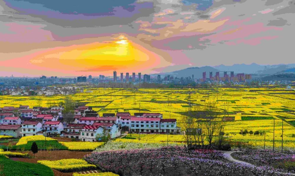 ▲ 地处秦巴山区的陕西省汉中市,有112万亩油菜花,年产油料14.4万吨。每年春天,盛开的油菜花与镶嵌其间的麦苗及青山绿水相互掩映,构成汉中盆地一道亮丽的风景线。