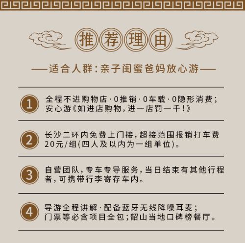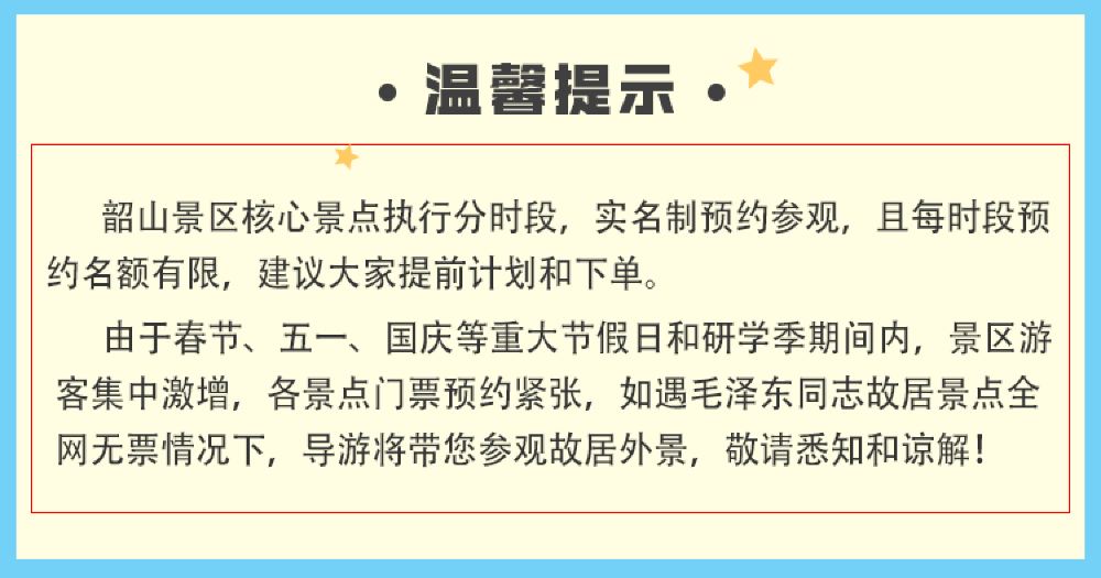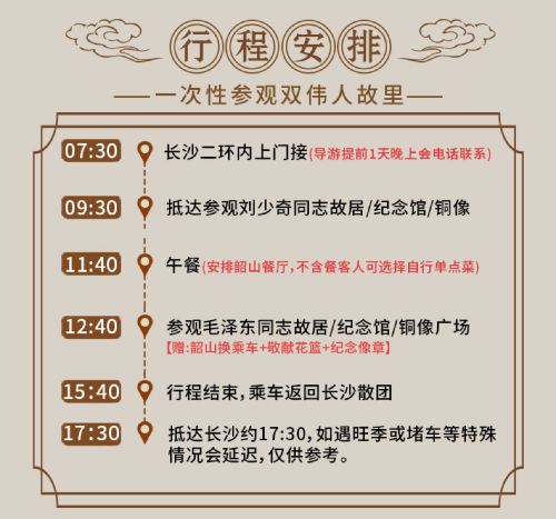 ②套餐B——20人团X不含餐(可自带简易餐,或在韶山餐厅自理现场点菜);