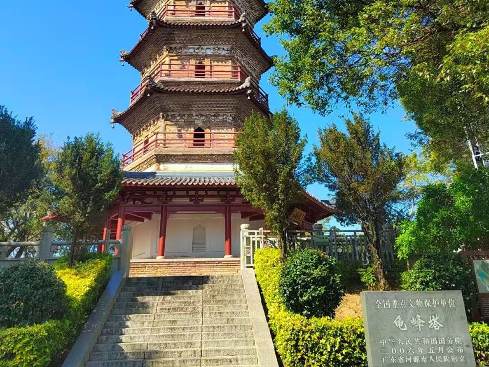 ▲ 恐龙文博园——门票自理,约30元/人,河源恐龙博物馆于2010年建成对外开放,馆藏恐龙蛋化石2万多枚,还有窃蛋龙类黄氏河源龙等 20多具恐龙骨骼化石以及南雄龟、菊石等古生物化石,是中国古生物学会全国科普教育基地。 龟峰塔——该塔始建于南宋绍兴二年(1132年),为六角七层楼阁式砖塔,塔高30.1米,塔身有仿木构的斗拱、栏杆等。