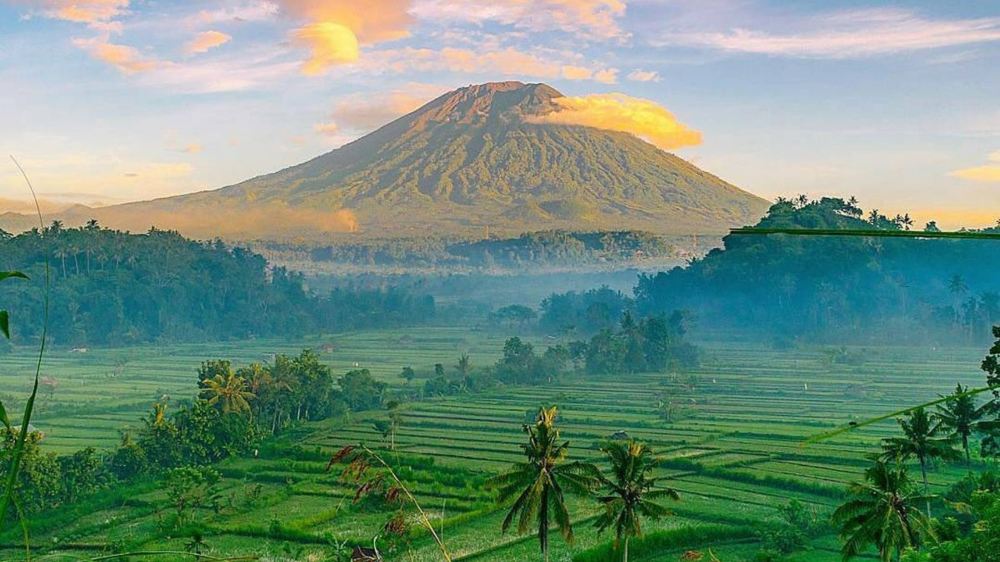 ▲ 位于巴厘岛东部的布吉辛塔山,坐拥阿贡火山壮丽日出美景,四周环绕着郁郁葱葱的稻田和绵延起伏的山丘。这里宁静祥和,晨光洒满大地,是摄影爱好者的天堂,也是开启美好一天的理想之地。