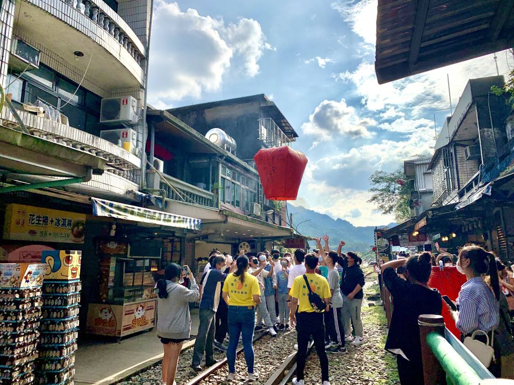 ▲ 十分老街 : 位于新北市平溪区,是平溪线铁路沿基隆河谷串起的特色小镇。铁轨与老街相融,体验“火车门前过”的新奇乐趣,吸引众多影视剧取景。虽煤矿停采,老街仍热闹非凡,美食店、天灯工艺品店人气旺盛。游客可书写“十分幸福”明信片,或在彩色天灯上写下心愿,店家指导放灯并协助拍照。放飞天灯,许下祝福,感受小镇古朴风情,是国际游客喜爱拜访之地!