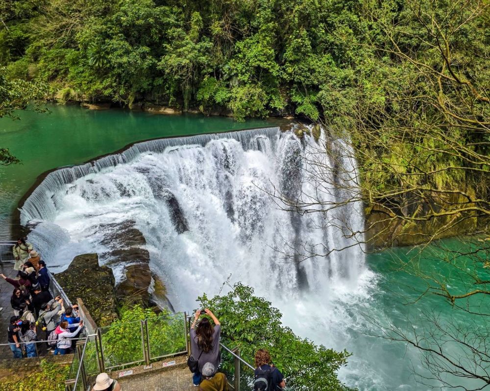 ▲ 十分瀑布 : 是台湾著名的瀑布溪谷景观。瀑布落差约20米,宽约40米,属逆斜层瀑布,形似北美尼加拉瀑布,被誉为“台湾尼加拉瀑布”。水潭深邃,水气弥漫,阳光折射下常现彩虹,故称“彩虹渊”。周围奇岩断层、巨石林立,展现自然鬼斧神工之美,是游客必访的热门景点!
