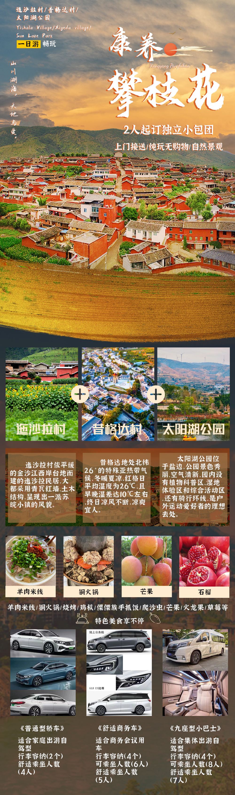迤沙拉村+昔格达村+红格太阳湖公园【2人起订 独立小包团】【2人起订 独立小包团 上门接送】