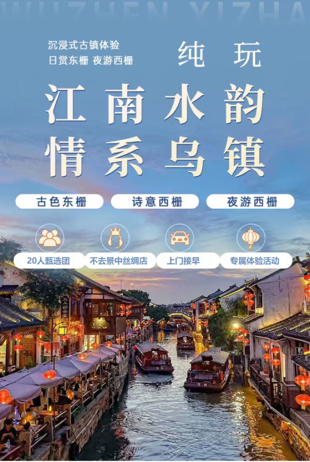 真纯玩20人团:嘉兴乌镇东栅+西栅日游夜景一日游/可订私家团【无套路真纯玩中小团,不进景中丝绸店,不进购物店,一价全含无隐形消费,资深导游带队讲解!】